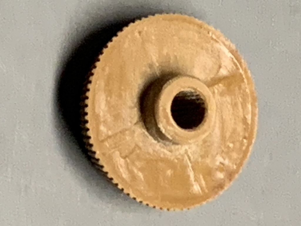 Dimensions: 1-1/8" diameter, 1/4" tall, 1/4" reach-back portion, 1/4" spline shaft.