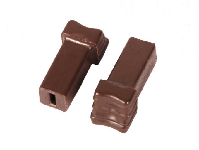 Dimensions: 7/8" long, 1/8" square shaft, button is 3/8" square, hole is 3/16" x 1/16"