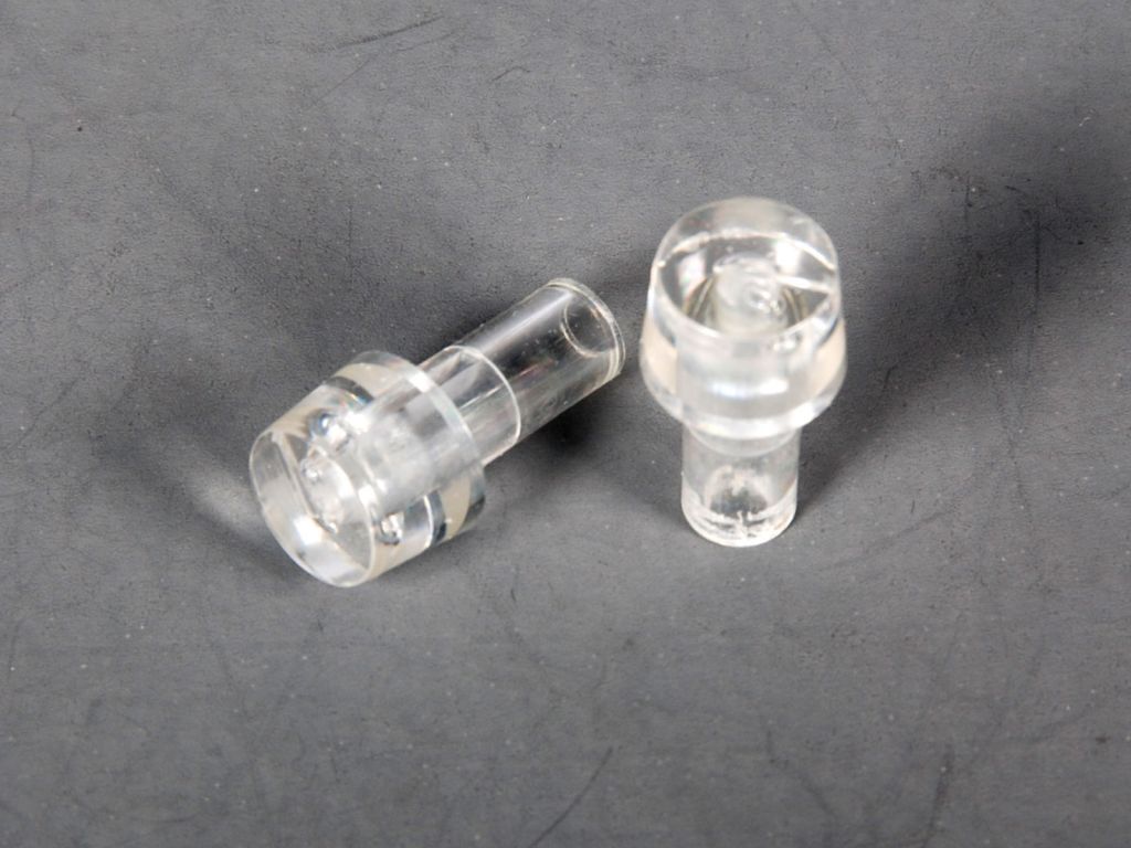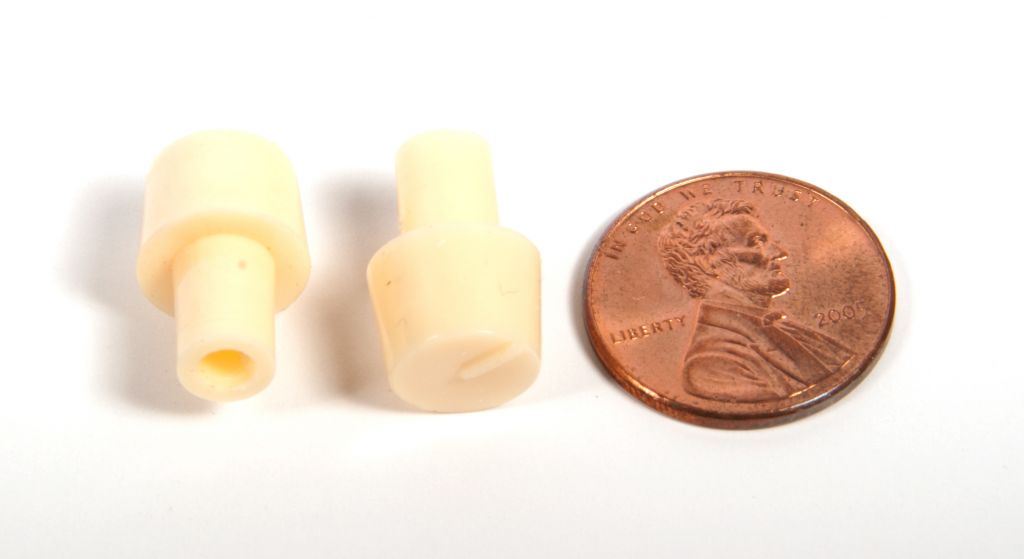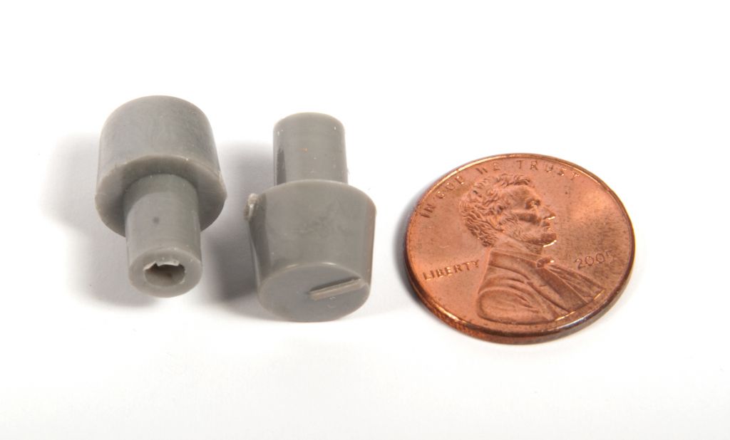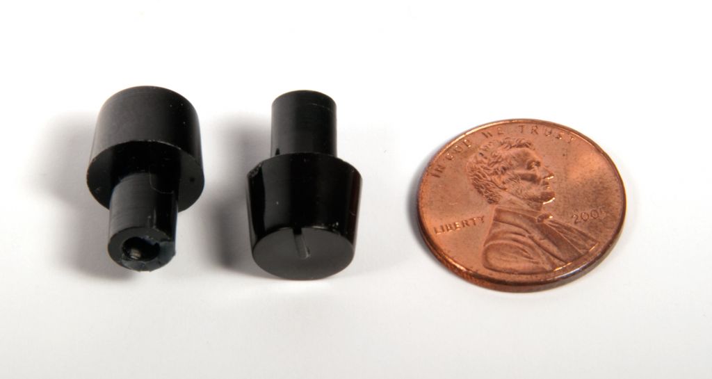 Short length, smooth, push-on knob with very slight vane. 5/8 in. long, 7/16 in. wide, 1/8 in. hole.