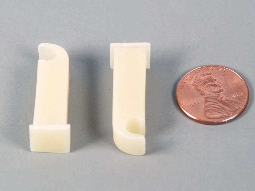 These slides have a little brass eyelet in them. Four of the slides have the eyelet closer to the short end, and two have the eyelet closer to the long end.